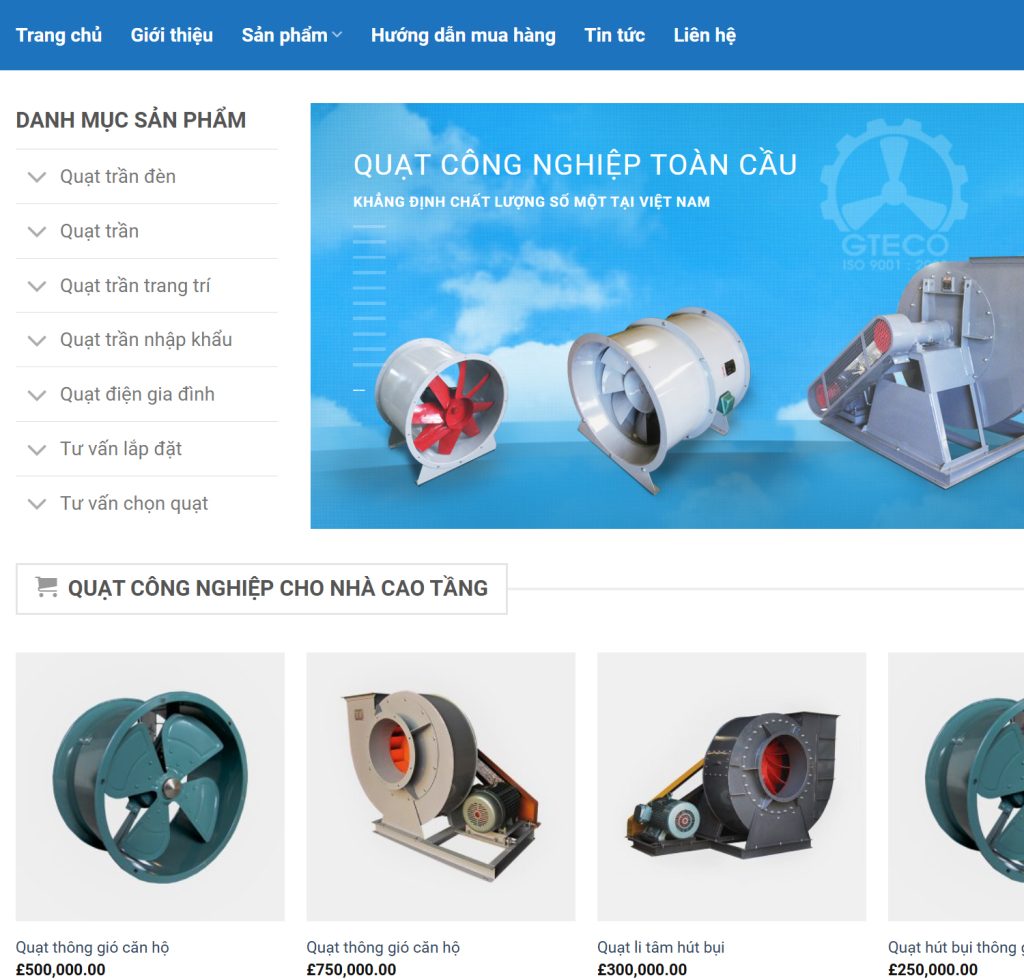 Code website bán hàng chuẩn seo, bán quạt công nghiệp, máy dụng cụ chuẩn seo, code web bán hàng bằng WordPress phù hợp cho các lĩnh vực: